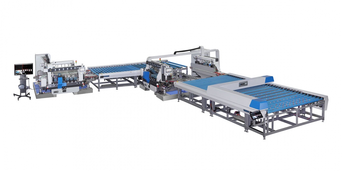 建筑、門窗中空玻璃、白玻和LOW-E玻璃全自動磨邊生產(chǎn)線。